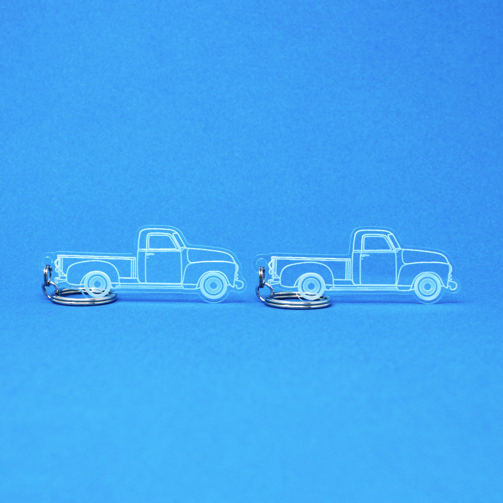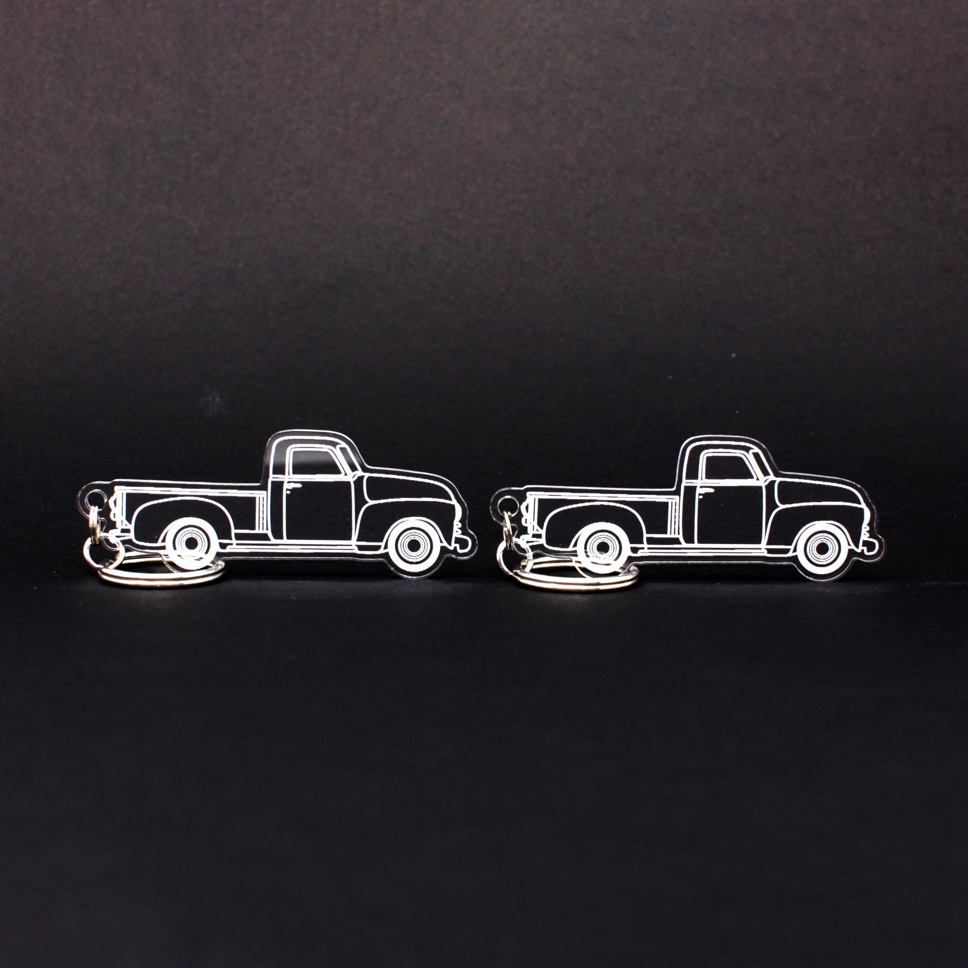 Two hand-drawn Chevrolet 3100 Truck Keychains | 1945-1955
