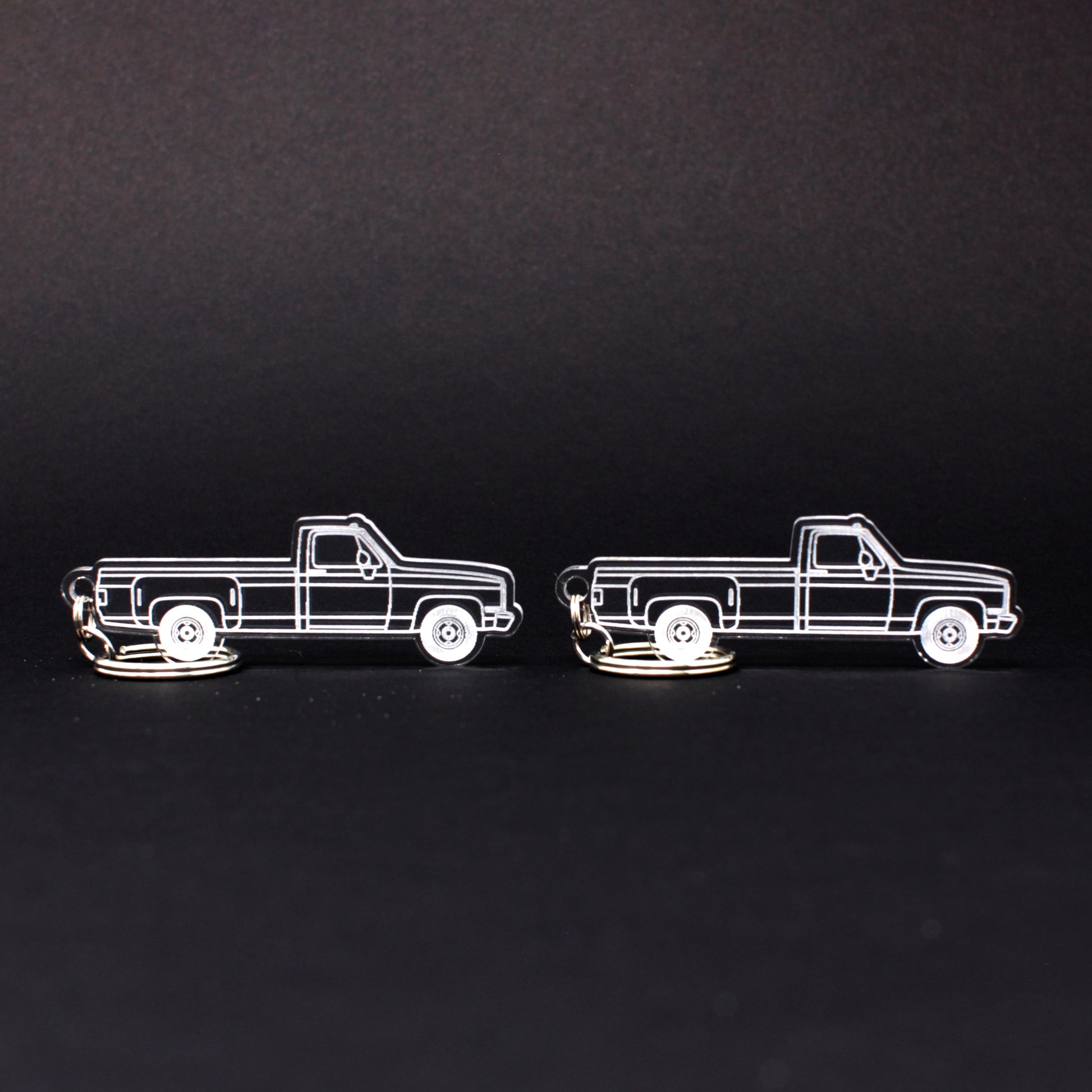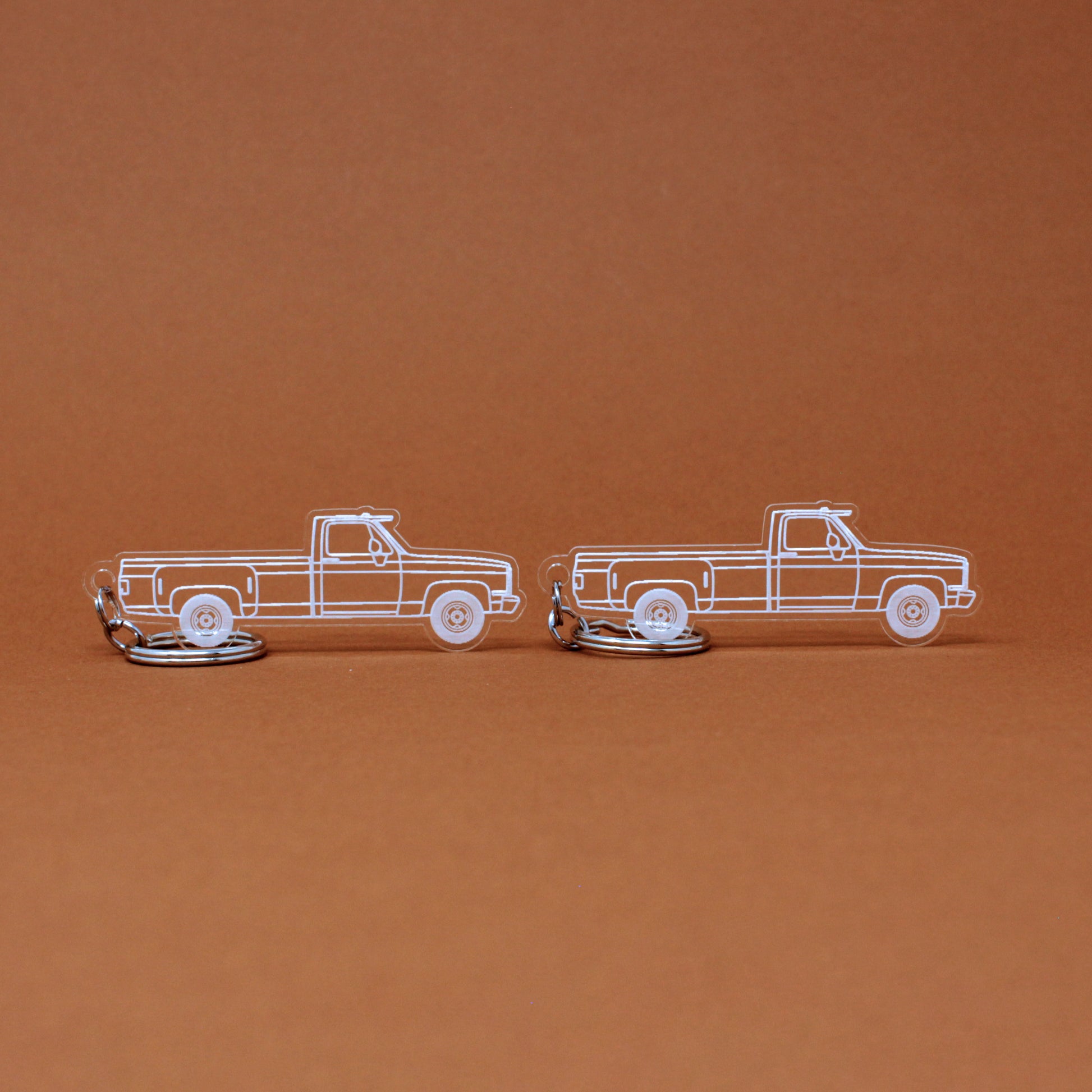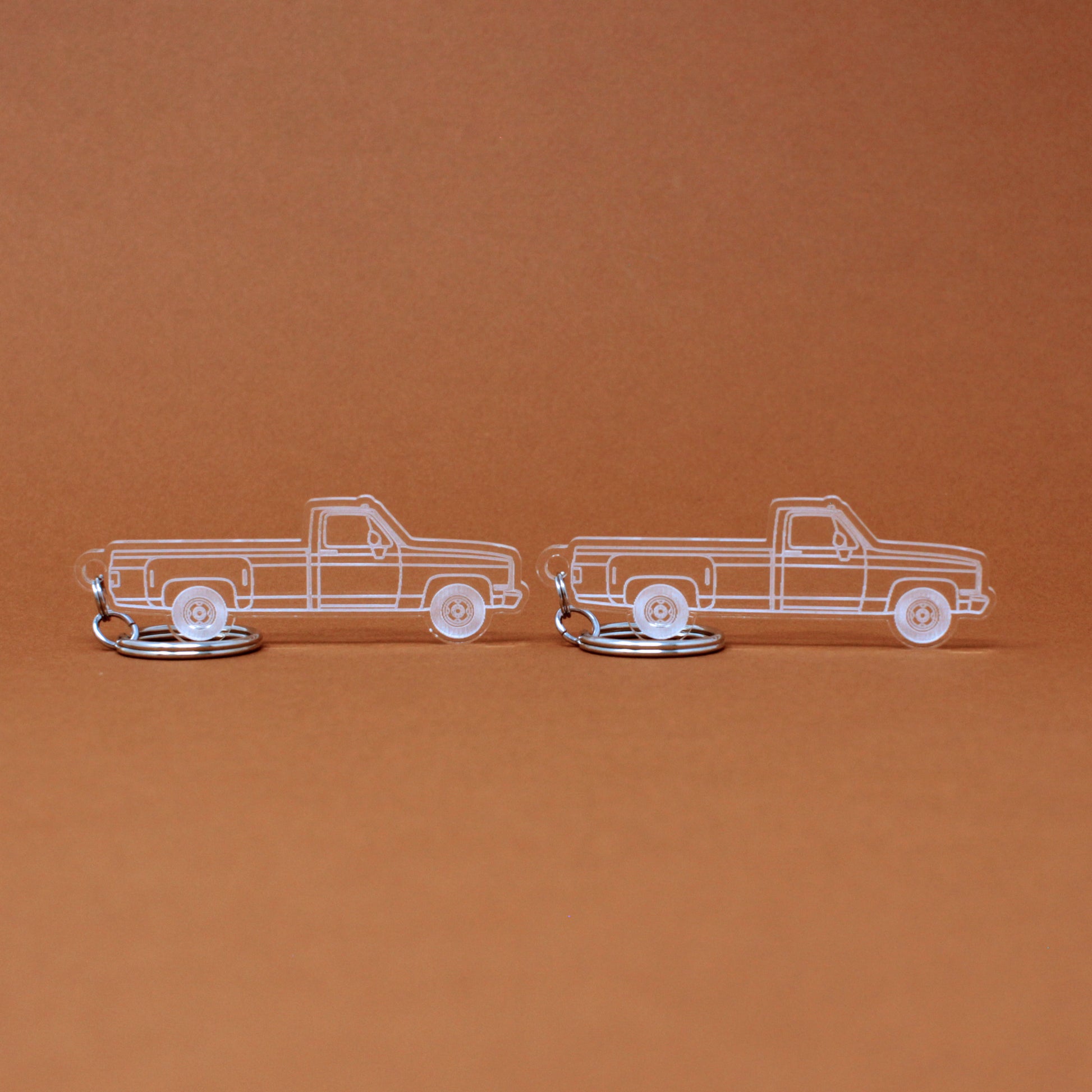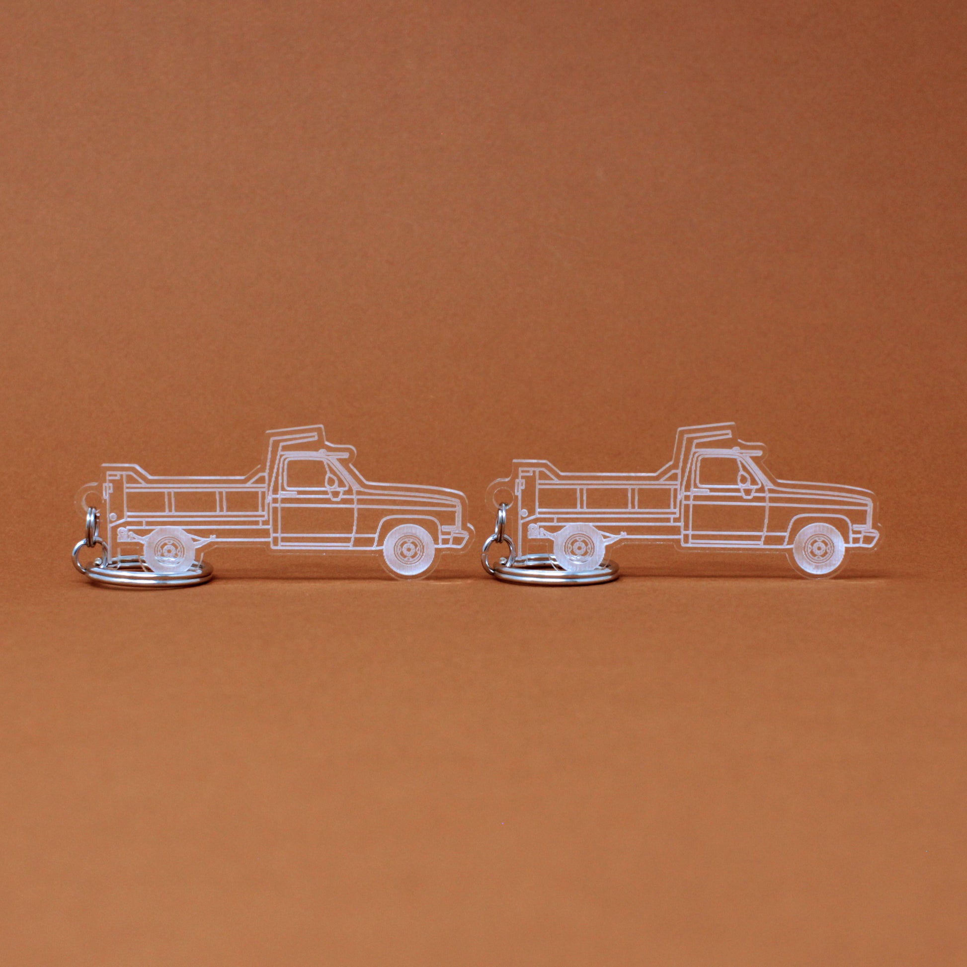 Two Hand-drawn Chevrolet R30 Keychains Reg Cab Dually Dooley | 1987-1991