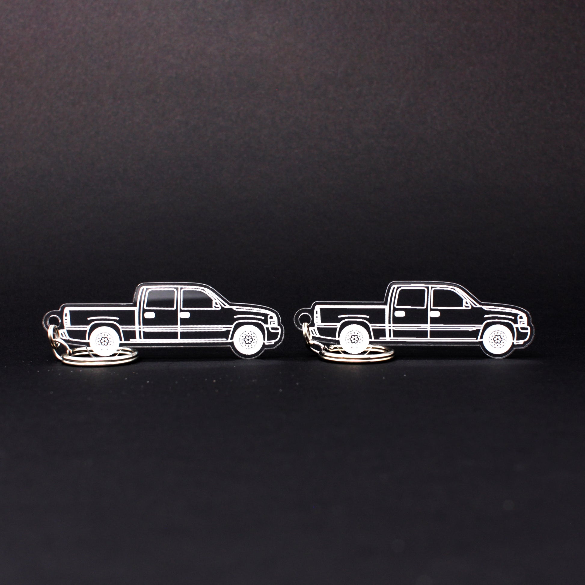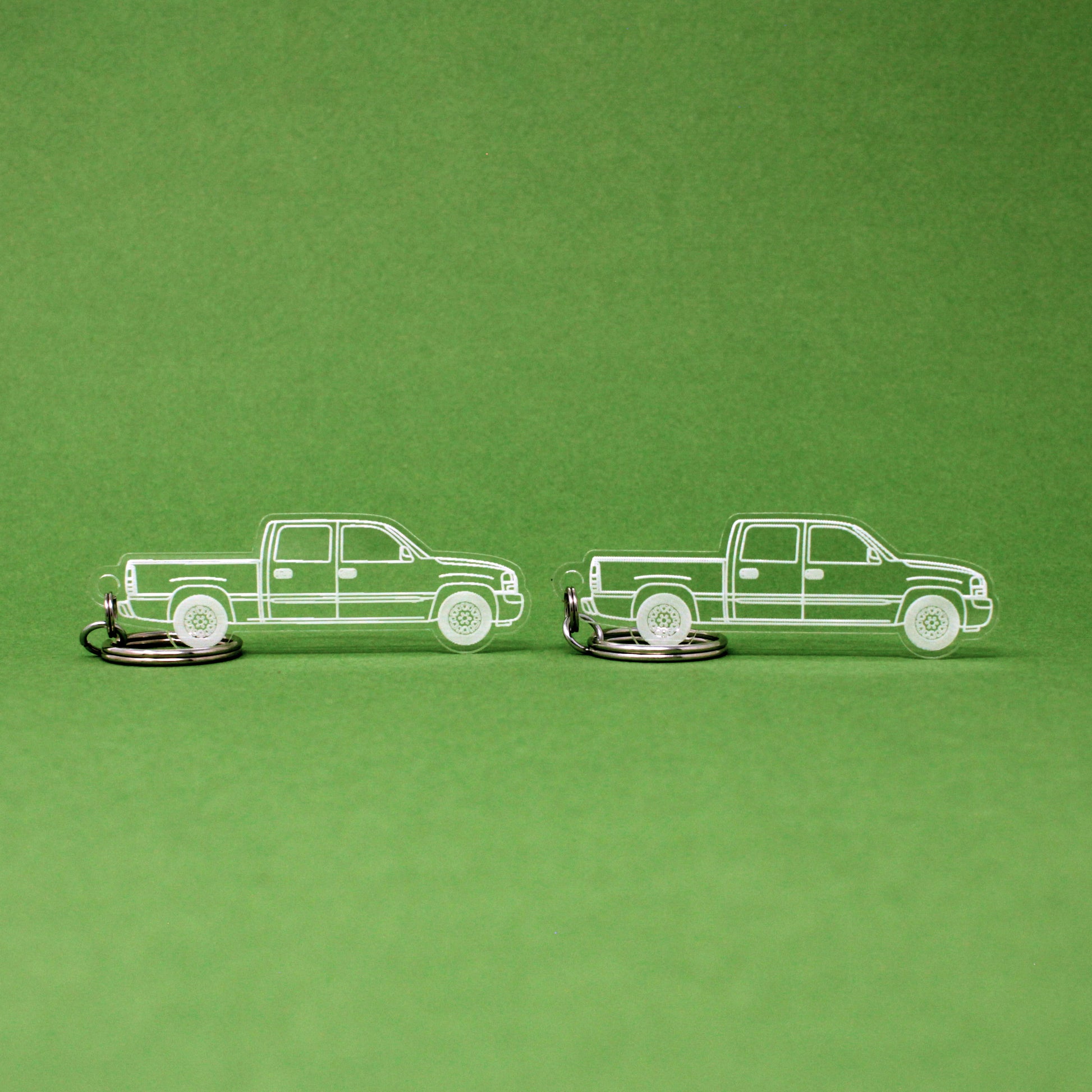 Two Hand-drawn GMC Sierra 1500 Keychains Crew Cab | 1996-2006