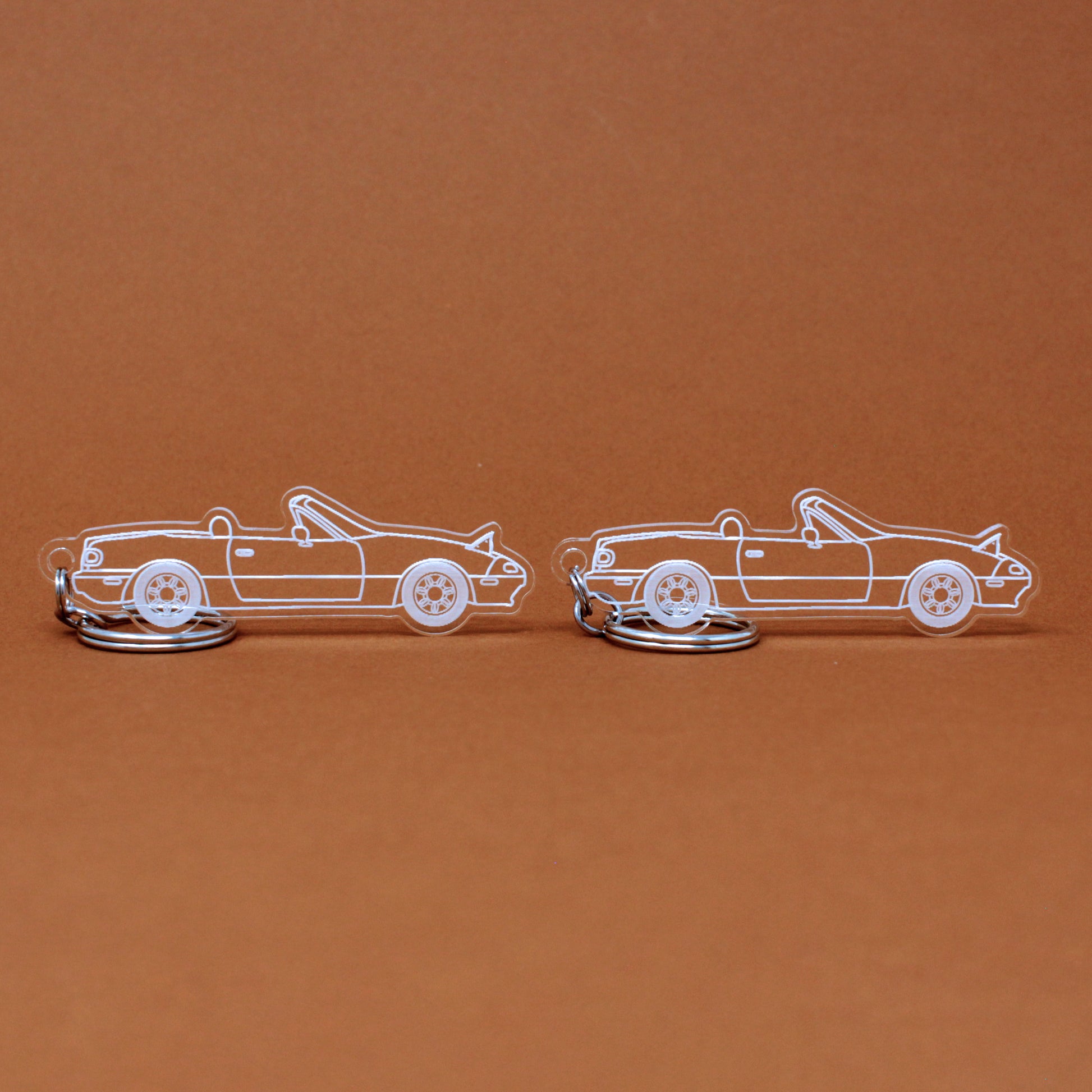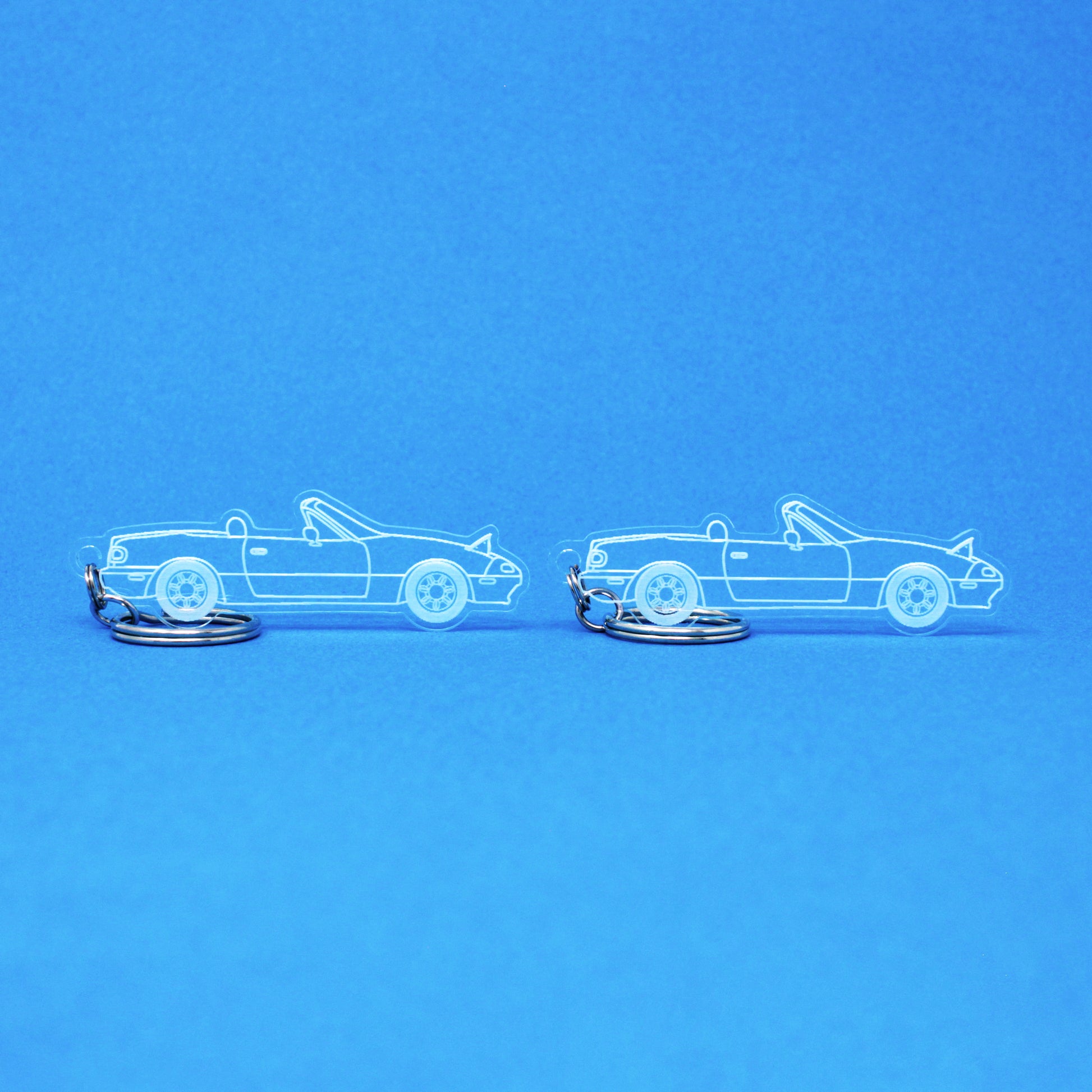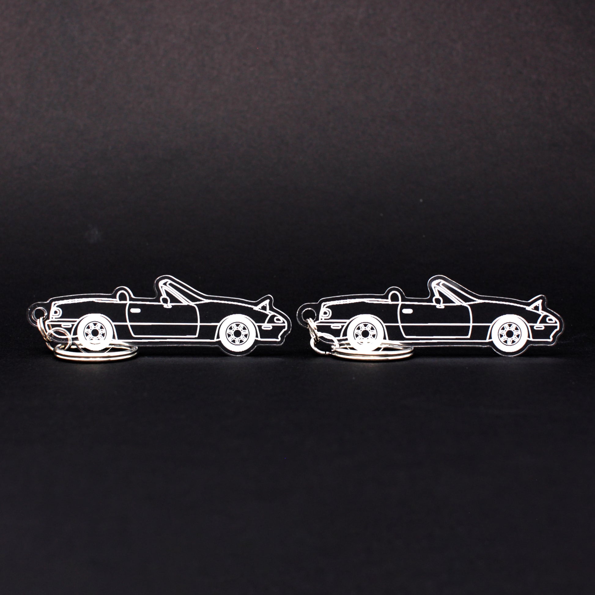 Two hand-drawn Mazda Miata Keychains NA [Lights Down] | 1989-1997