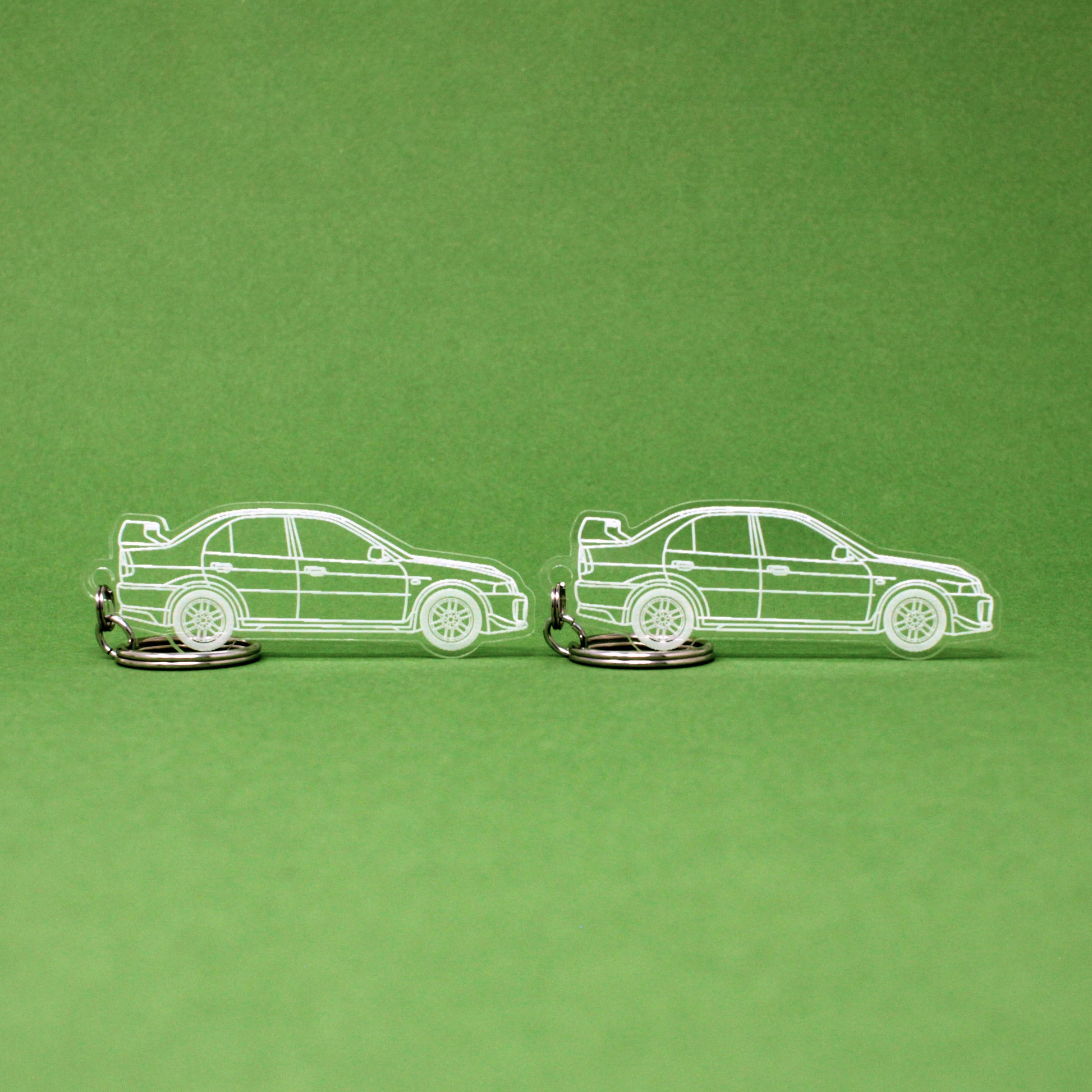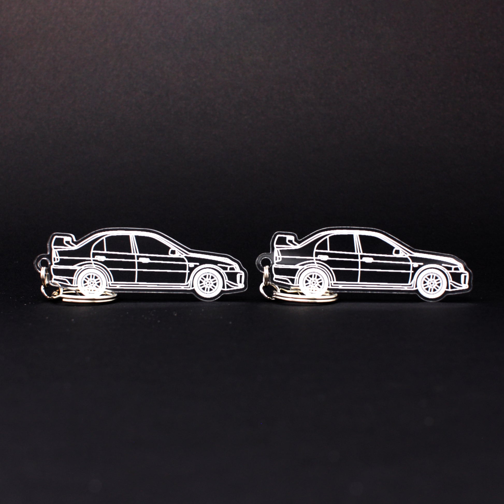 Two Hand-drawn Mitsubishi Lancer Evo V Keychains | 1998-1999