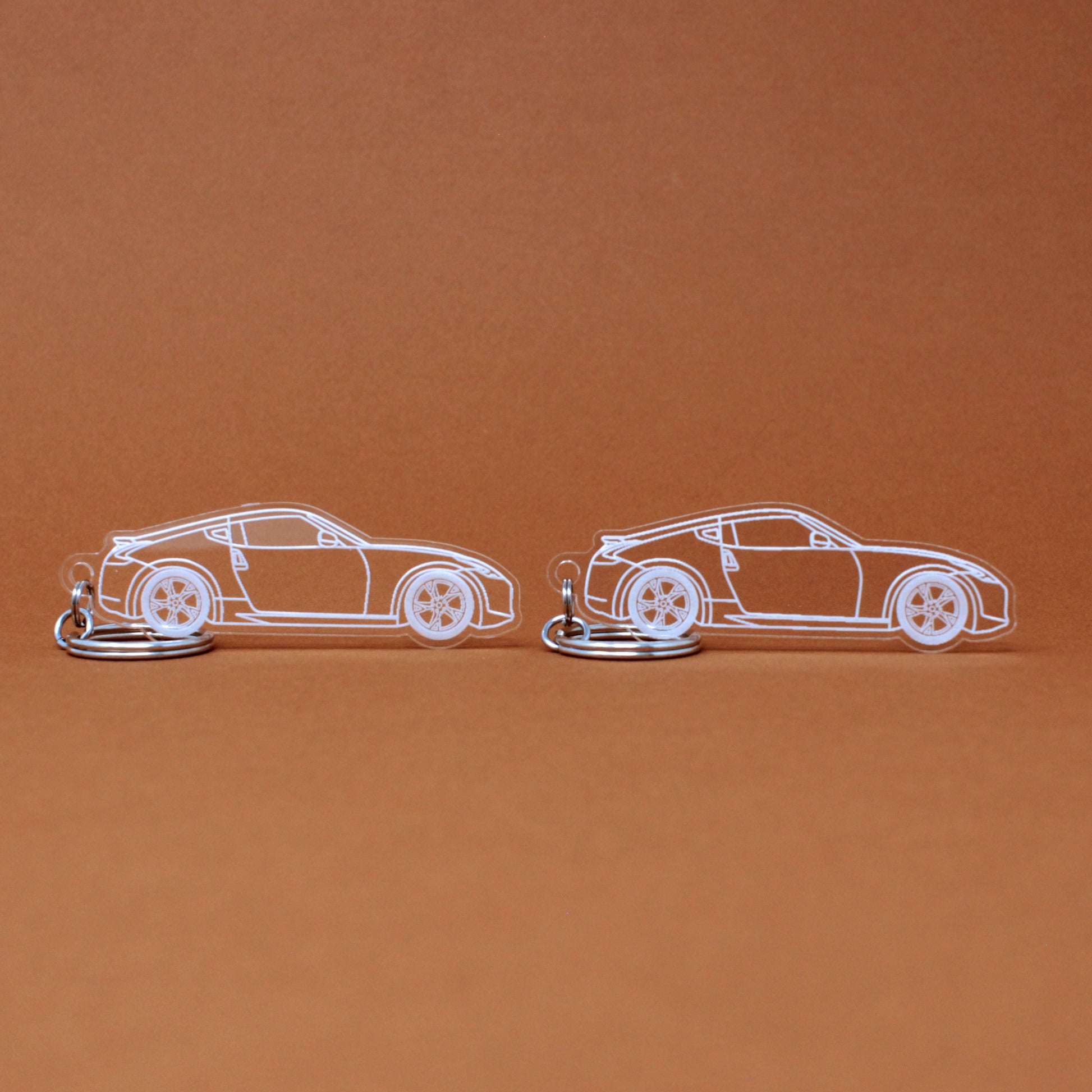 Two Hand-drawn Nissan 370Z Keychains | 2009-2020
