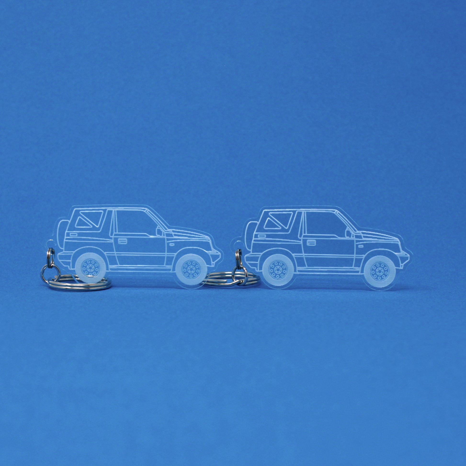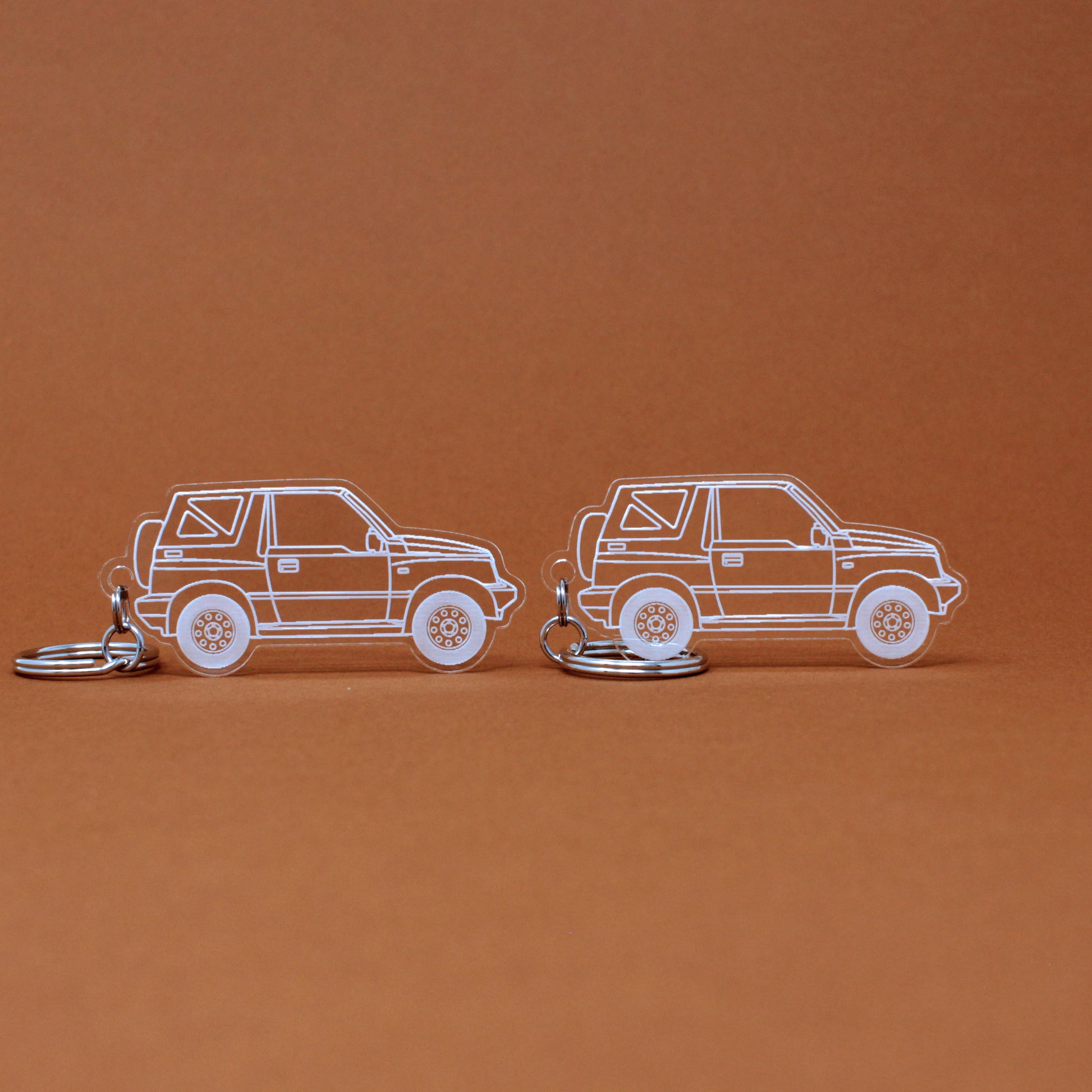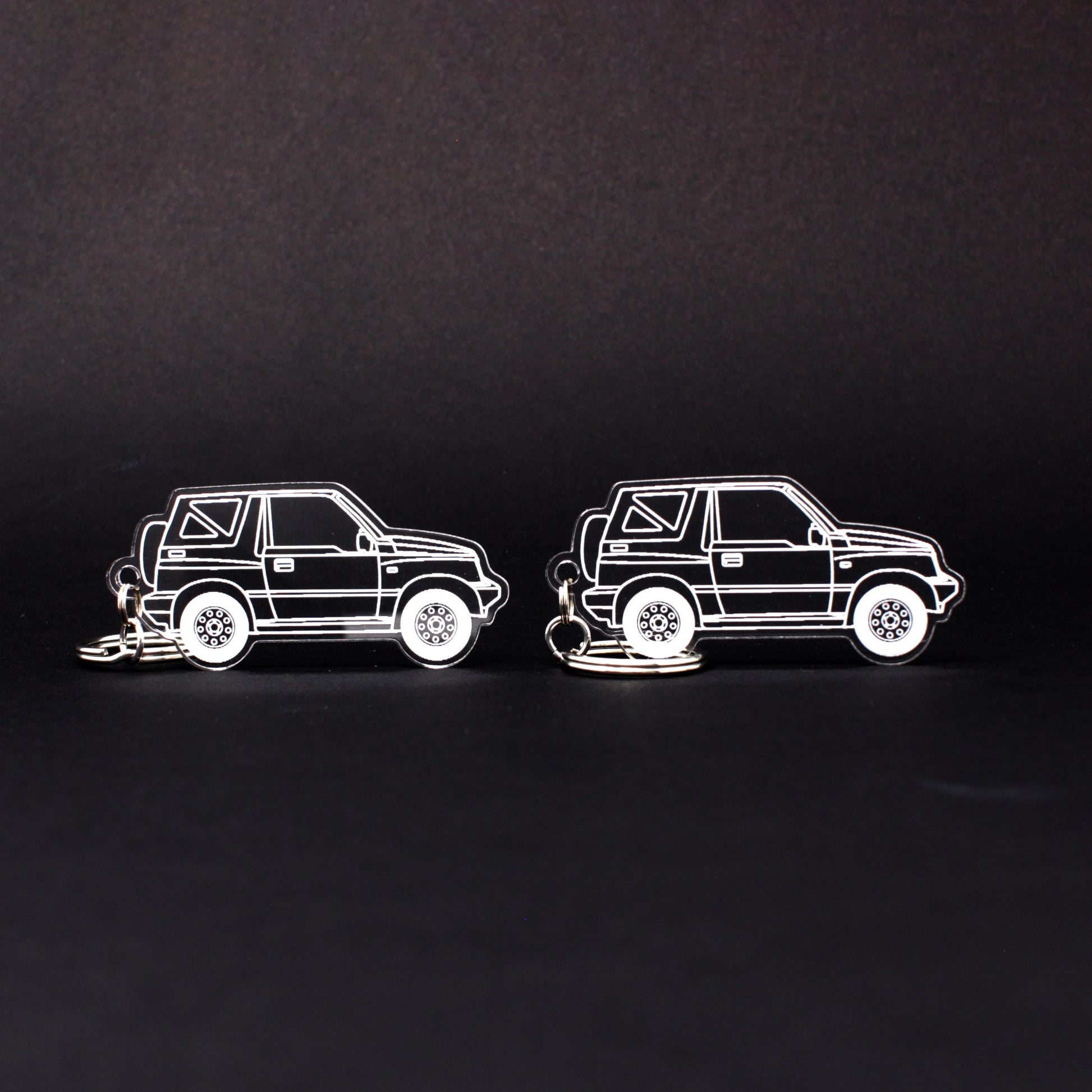 Two hand-drawn Suzuki Sidekick Keychains 1st Gen 3 Door Hardtop | 1989-1999